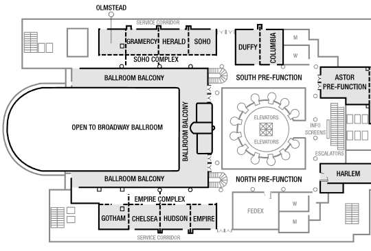 - Access via stairs inside the 6th Floor Broadway Ballroom only