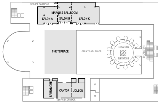 - Skittles & Parent Lounges: Terrace, Marquis Ballroom, Cantor/Jolson Rooms
